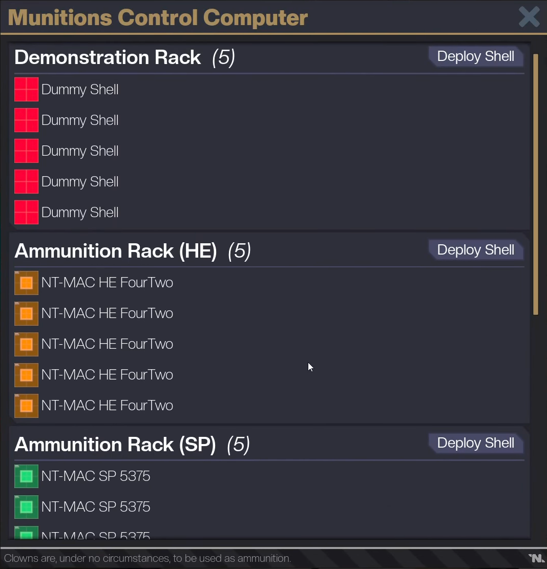 The inclusion of many menu elements on the screen and various mini-game tasks to complete are intentionally done to contribute to an overarching sense of pressure building in the game. The captain issuing orders, juggling the MAC itself as well as the Ammo Racks, Shells and Multi-Tool means that the player needs to consider their priorities and choose their tasks. The need to make these decisions will further inhibit their proficiency at the tasks, leading to a higher chance of failure. The stress induced fail conditions often leave players with a feeling of frustration that encourages them to try again and push on to improve on their own score or success.