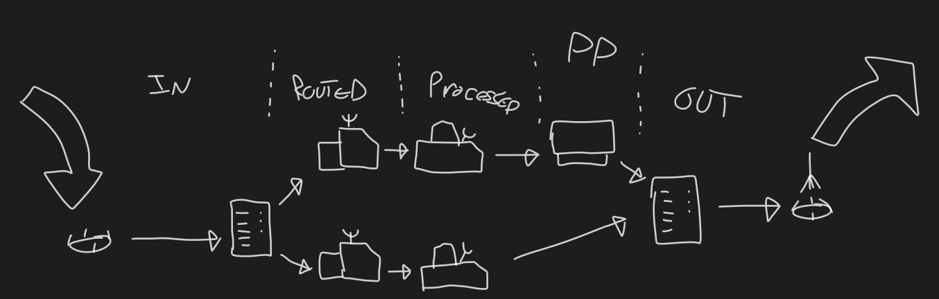 To begin this project, I researched the existing systems in place on the /tg/station wiki. Noting down the key features I was able to construct a rough diagram of the flow for a message in the telecomms system.